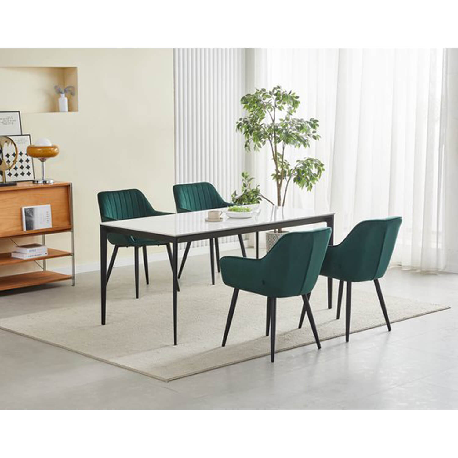 Der Luna Esszimmerstuhl steht fest auf einem Rahmen, der Stabilität und Langlebigkeit garantiert. Das moderne Finish wird durch Gummikappen unter den Beinen unterstrichen, die Ihren Boden vor Kratzern schützen. So können Sie Stil unbeschwert genießen.