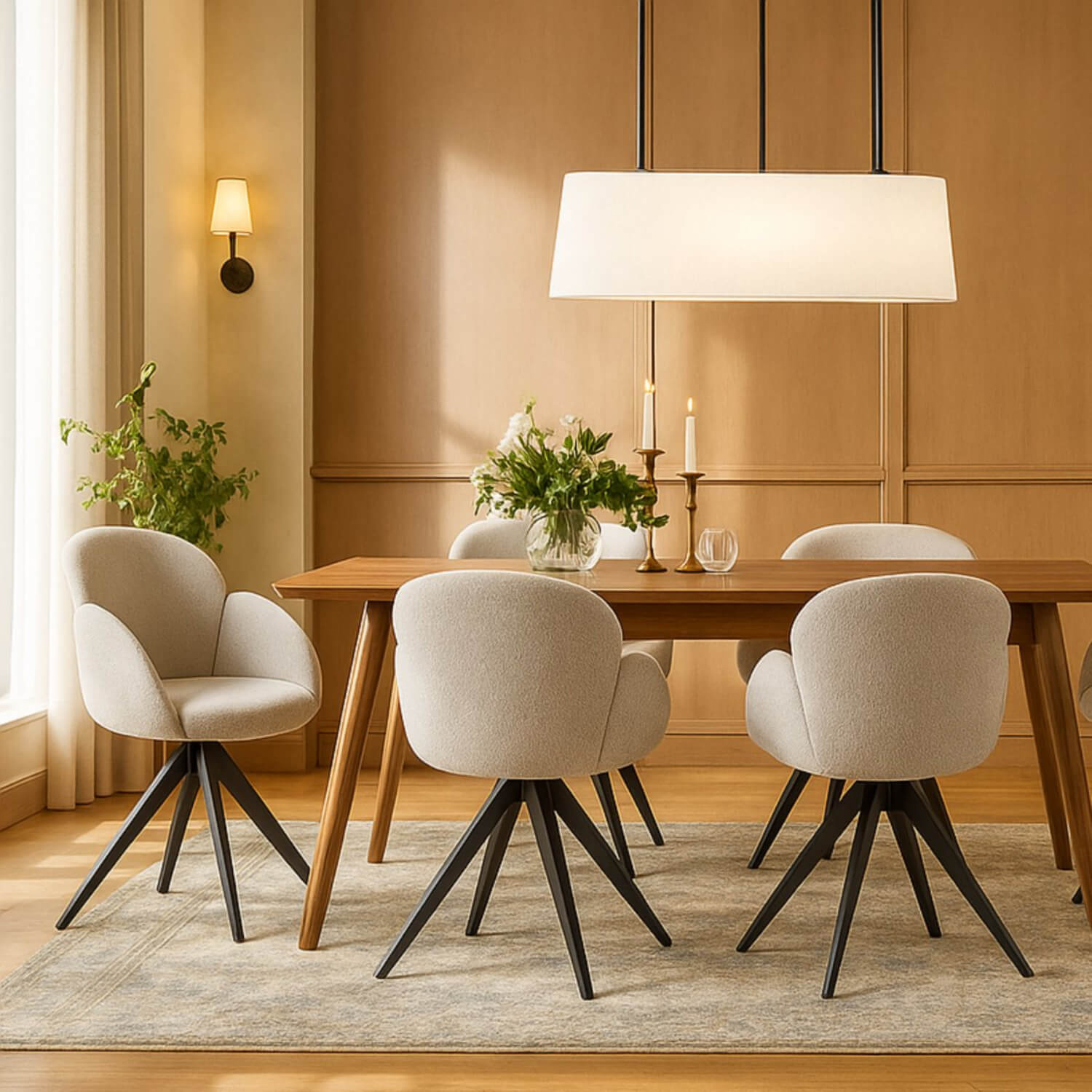 Der hochwertige Bouclé-Stoff fühlt sich angenehm weich an und verleiht dem Stuhl eine elegante und warme Ausstrahlung.