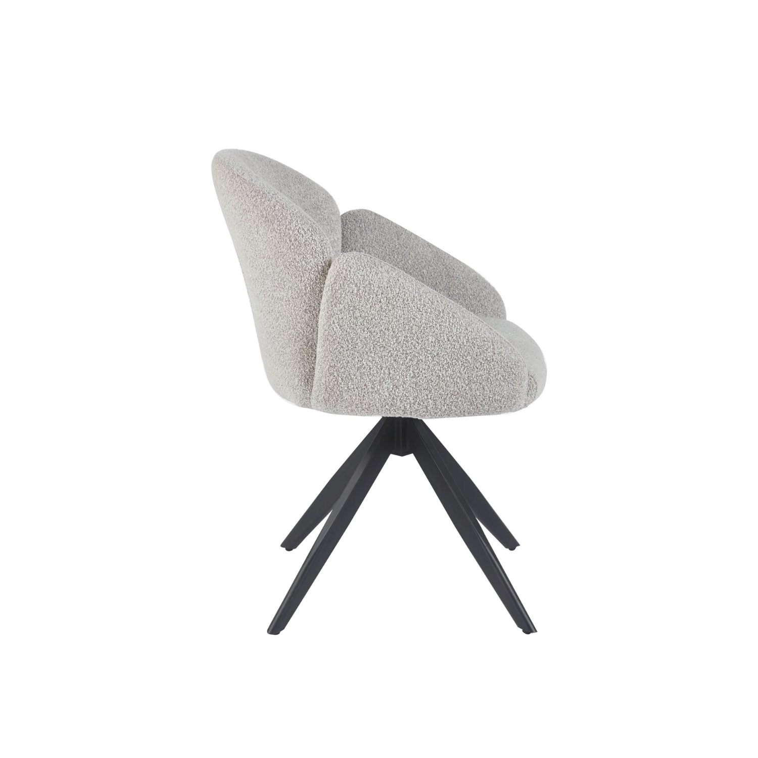 Der hochwertige Bouclé-Stoff fühlt sich angenehm weich an und verleiht dem Stuhl eine elegante und warme Ausstrahlung.