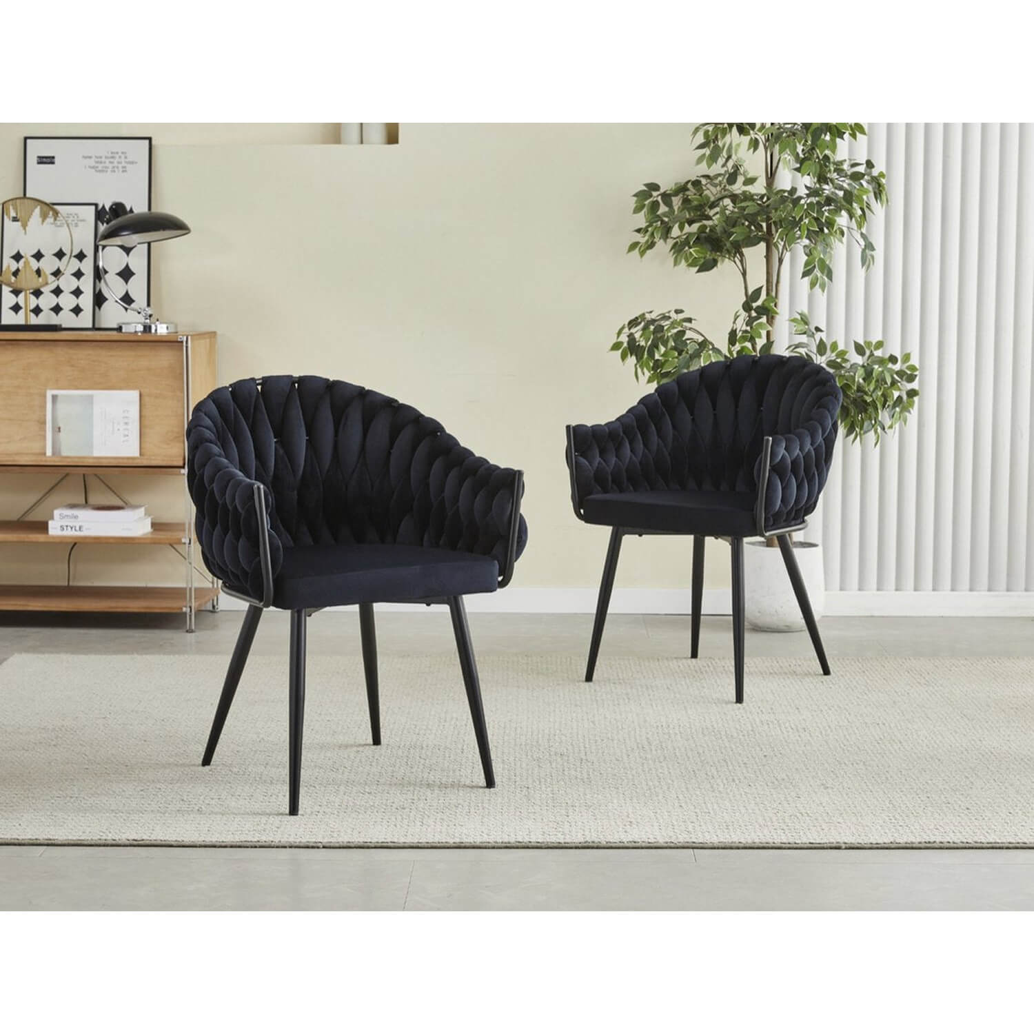 Wave Esszimmerstuhl – Schwarz – Samt – Schwarze Beine